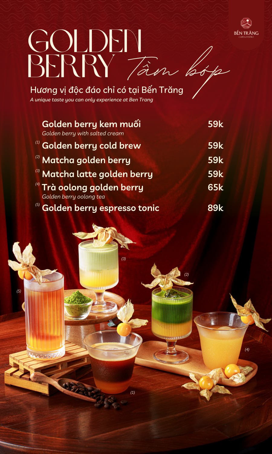 Huế, thành phố mang vẻ đẹp trầm mặc, thơ mộng và dịu dàng như một tình ca xưa. Giữa lòng Cố Đô, sông Hương vẫn yên tĩnh qua bao mùa, giữ nguyên bình yên và lãng mạn vốn có. Với view sông thơ mơ, không gian được thiết kế sang trọng và kết nối độc quyền với hệ thống du thuyền Moon River Cruises, Bến Trăng Cafe & Bistro là liều lựa chọn hoàn hảo cho những ai tìm kiếm sự khác biệt và đẳng cấp trong từng khoảnh khắc đặc biệt.