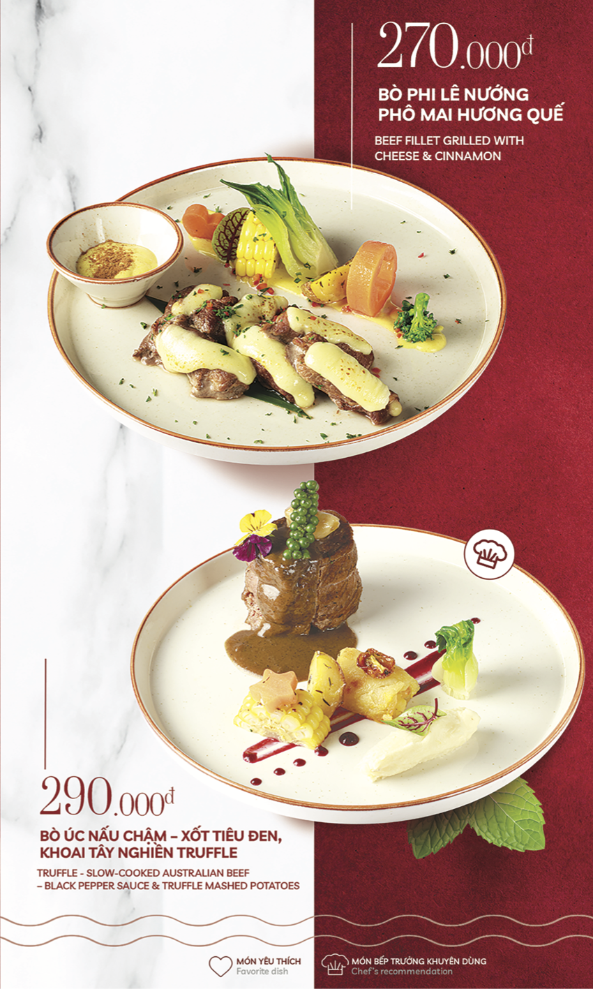 Ẩm thực tinh tế thăng hoa trong không gian bistro thanh lịch, nơi mỗi cuộc gặp gỡ được nâng niu bằng những khoảng lặng đủ để cảm nhận trọn vẹn hương vị.
